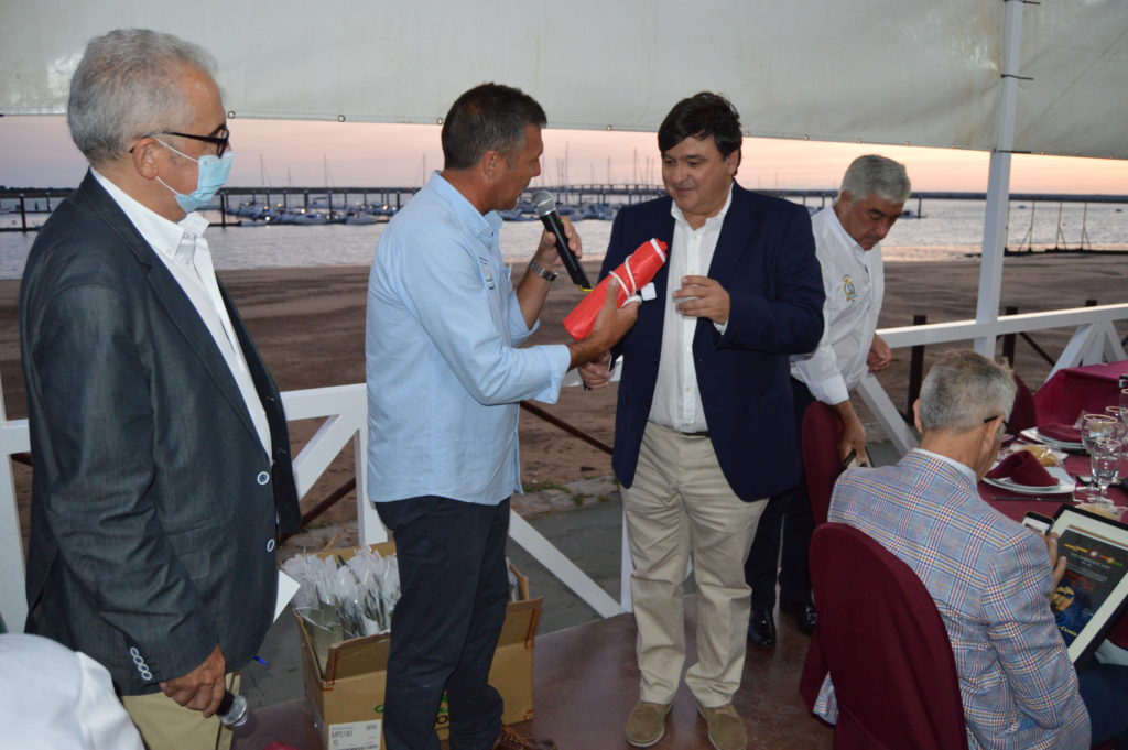 A continuación se produjo un intercambio de presentes, donde por parte del club y con la participación del Alcalde y la Presidenta del Puerto, se les entregó a los representantes de las asociaciones una metopa representativa del RCMH. Después, las instituciones de Huelva fueron agasajadas por las asociaciones portuguesas con sendos detalles representativos de la Circunnavegación, cuadros alusivos a la travesía como colaboradores de la misma, libros, insignias, folletos y demás enseres. También se les entregó a todos los asistentes unas bolsas con contenidos representativos de nuestra ciudad donadas por el Ayuntamiento de Huelva. Los asistentes fueron agasajados después con una degustación en la terraza del bar-restaurante del Club.
